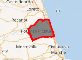 Potenza Picena is a comune (municipality) in the Province of Macerata in the Italian region of Marche, about 30 kilometres (19 mi) southeast of Ancona and about 15 kilometres (9 mi) northeast of Macerata.