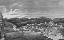 A lead mining settlement at this spot, "Mine à Breton" or Mine au Breton, was founded between 1760 and 1780 by Francis Azor, of Brittany, France. Moses Austin came here in 1798 with his family, including his son Stephen F. Austin. Moses obtained a grant of 7,153 arpents of land from the Spanish Empire and started large-scale mining operations, building his town to support it. Moses named the town after Potosí in Bolivia, which was famous for its vast silver mines. Austin's tomb and the foundation of his home Durham Hall can still be seen. Another mining entrepreneur in Potosi at the time of Moses Austin was James Bryan. Firmin Rene Desloge, who emigrated from Nantes, France in 1822 as the progenitor of the Desloge Family in America, located in Potosi and established a mercantile, distillery, fur trading and lead smelting business. The Desloge lead mining business Desloge Lead Company and later Desloge Consolidated Lead Company was later relocated to Bonne Terre, MO and also Desloge, MO by his son Firmin V. Desloge.[9][10]