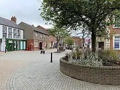 ![]() Poulton's marketplace in 2019, looking south towards Market Place | |