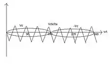 Inverters can use several modulation techniques to control their switching schemes. The carrier-based PWM technique compares the AC output waveform, vc, to a carrier voltage signal, vΔ. When vc is greater than vΔ, S+ is on, and when vc is less than vΔ, S- is on. When the AC output is at frequency fc with its amplitude at vc, and the triangular carrier signal is at frequency fΔ with its amplitude at vΔ, the PWM becomes a special sinusoidal case of the carrier based PWM.[15] This case is dubbed sinusoidal pulse-width modulation (SPWM).For this, the modulation index, or amplitude-modulation ratio, is defined as ma = vc/v∆ .