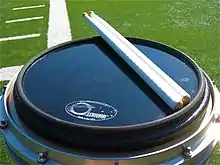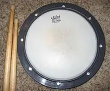 A practice pad or drum pad, is a type of percussion implement utilized by drummers and percussionists to quietly practice or warm up before a performance. Many percussionists practice primarily using practice pads. Practice pads have adapted to fit the needs of different percussion drums.