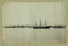 On October 5, a powerful cyclone hit near Calcutta, India, killing around 300,100 people.[7] The anemometer in the city was blown away during the cyclone. Over 100 brick homes and tens of thousands of tiled and straw huts were leveled. Most ships in the harbor (172 out of 195) were either damaged or destroyed.[8] The cyclone of 1864 destroyed the ports at Khejuri and Hijli.[9]