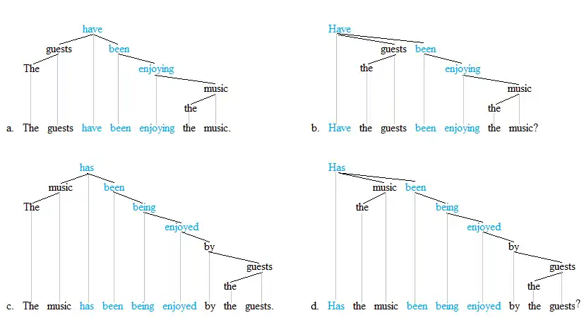 - Dependency trees like the one here can be found in, for instance, Osborne, Putnam & Groß (2012).