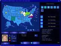 Once the player has decided on their candidate, it's time to crush the opposition. Starting on October 1, 2007, a successful candidate must develop strategies that will out-wit their opponents and also focus their limited resources by choosing which states they will target and how much expend on each one. Players can recruit new foot soldiers in individual states to help boost the momentum and draw voters based on local efforts. To help spread the campaign message across all states in a candidate's strategy, a player can use big-name crusaders to travel from state to state to help drum up popular support.