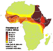 As of 2018, UNICEF's latest data, from 2016, reports 10% of Ivory Coast girls aged 0 to 14 had been subjected to FGM, while 37% of females aged 15 to 49 had so.[56] The latter figure is practically unchanged from a prior 2006 survey, in which the prevalence of FGM was reported at 36.4% among women there aged 15–49.[61] A 2005 survey found that 42% of all women aged between 15 and 49 had been subjected to FGM.[73] This is similar to the FGM reported rate of 46% in 1998 and 43% in 1994.[57] The prevalence varies with religion in Côte d'Ivoire; FGM is prevalent in 76% of Muslim women, 45% of Animist, 14% of Catholic and 13% of Protestant women.[73] A 1998 law provides that harm to the integrity of the genital organ of a woman by complete or partial removal, excision, desensitization or by any other procedure will, if harmful to a woman's health, be punishable by imprisonment of one to five years and a fine of 360,000 to two million CFA Francs (approximately US$576–3,200). The penalty is five to twenty years incarceration if a death occurs during the procedure and up to five years' prohibition of medical practice, if this procedure is carried out by a doctor.[38]