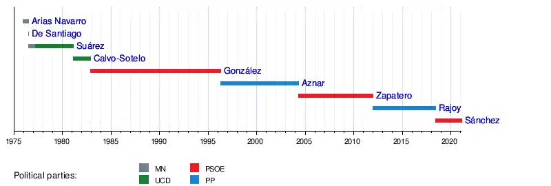 - "Relación cronológica de los presidentes del Consejo de Ministros y del Gobierno". La Moncloa (in Spanish). Gobierno de España. Retrieved 25 July 2019.