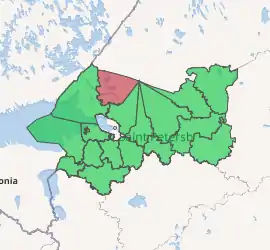 Priozersky District (Russian: Приозе́рский райо́н) is an administrative[1] and municipal[6] district (raion), one of the seventeen in Leningrad Oblast, Russia. It is located in the northwest of the oblast and borders with Lakhdenpokhsky District of the Republic of Karelia in the north, Vsevolozhsky District in the south, and Vyborgsky District in the west. In the east, the district is bounded by Lake Ladoga. The area of the district is 3,597.5 square kilometers (1,389.0 sq mi).[2] Its administrative center is the town of Priozersk.[1] Population (excluding the administrative center): 43,260 (2010 Census);[3] 42,859 (2002 Census);[8] 40,231 (1989 Census).[9]