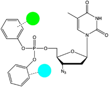 The first breakthroughs in ProTide research was made in 1992, when the McGuigan group noted the efficacy of aryloxy phosphates and phosphoramidates.[1] In particular, diaryl phosphates were prepared from zidovudine (AZT) using simple phosphorochloridate chemistry. For the first time, the anti-HIV activity of these phosphate derivatives of AZT exceeded that of the parent nucleoside in some cases. Moreover, while AZT was almost inactive (EC50 100μM) in the JM cell line, the substituted diaryl phosphate was 10-times more active (EC50 10μM). At the time, it was considered that JM was AZT-insensitive due to poor phosphorylation. It later emerged that an AZT-efflux pump was the source of this poor AZT sensitivity. However, the conclusion remains valid that the diaryl phosphate was more able to retain activity in the JM cell line, and that this may imply a (small) degree of intracellular phosphate delivery. The electron-withdrawing power of the p-nitro groups and putative enhancements in aryl leaving group ability were suggested as the major driving force of this SAR.