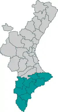 Alicante (Spanish: [aliˈkante]; Valencian: Alacant [alaˈkant]) is a province of eastern Spain, in the southern part of the Valencian Community. It is the second most populated Valencian province. Likewise, the second and third biggest cities in the Valencian Community (Alicante and Elche, respectively) are located in this province.