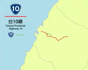 Provincial Highway 10 (PH 10, Chinese: 台10線)is a short east–west highway that is entirely within the city limits of Taichung. The highway connects Port of Taichung with the northern suburbs of Qingshui, Shalu, Daya, Shengang, and Fengyuan. The total length of the highway is 21.13 kilometres (13.13 mi).[1]