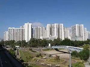 Long Ping Estate (Chinese: 朗屏邨) is a mixed public/TPS estate in Wang Chau[6] near MTR Long Ping station. It is the third public housing estate in Yuen Long Town. It has a total of 15 residential blocks completed between 1986 and 1989.[7] In 2005, some of the flats were sold to tenants through Tenants Purchase Scheme Phase 6B.[8][9]
