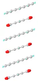 Structure of the complex formed upon co-crystallization of pyromellitic anhydride (molecules terminated in red) and anthracene.[3]