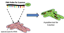 Although the quantitative ability of Q-FISH is most commonly used in telomere research, other fields that only require qualitative data have adopted the use of PNAs with FISH for both research and diagnostic purposes. PNA-FISH assays have been developed for identifying and diagnosing infectious diseases in a rapid manner within the clinic. Combined with traditional gram staining of positive blood cultures, PNAs can be used to target species-specific rRNA (ribosomal RNA) to identify different strains of bacteria or yeast.[11] Since the test can be performed relatively quickly, the test is being considered for use in hospitals where hospital-acquired infections can occur.
