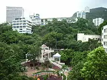 The eastern part of the road was cut through Morrison Hill, which formerly separated Wanchai from Happy Valley. This section was known as 'Gap Road'. That name was still in use around 1930, even though the high land to the north of the 'gap' was levelled in the 1920s and the materials used to reclaim land from the harbour, under the Praya East Reclamation Scheme.[6]