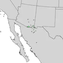 | Natural range of Quercus toumeyi | |