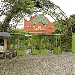 Quito Botanical Garden (Spanish: Jardín Botánico de Quito) is a Park, botanical garden, arboretum and greenhouse s of 18,600 square meters that it is planned to increase, it houses species of plants of the country (Ecuador is among the 17 richest countries in the world in native botanical species, an updated study on the classified Ecuadorian flora, determines the existence of 17,000 species), which is found in the city of Quito, Ecuador. The identification code of the Botanical Garden Quito as a member of the Botanic Gardens Conservation International (BGCI), as well as the initials of its herbarium is QUITO .[1]