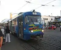 Trams have been in operation in Riga longer than any other mode of public transport, with the first horse-drawn trams entering service in 1882. In 1900, it was agreed that a number of electric tram lines would be built in the city, with the first electric trams starting operation in 1901.[11] Tram construction continued until the outbreak of World War I. Operation of the tramways remained largely unchanged until 1918 and the emergence for the first time of Latvia as an independent nation, when a Belgian company took over. This period of private ownership was deemed a failure, and the city authorities regained control of the tram network in 1931. World War II devastated Riga's public transport system, and it was gradually rebuilt to its current level.[11]