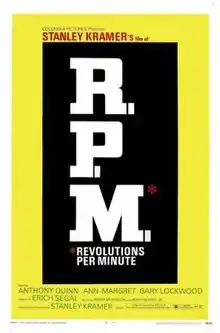 R.P.M. is a 1970 American drama film directed by Stanley Kramer, starring Anthony Quinn and Ann-Margret.[1] As the film's poster notes, the title is an acronym for "revolutions per minute", which at the time was a common term for the variable speed of a record player's turntable.