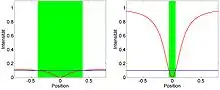The sample is illuminated inhomogeneously with the illumination intensity at one position being very small (zero under ideal conditions). Only at this place are the molecules never in the dark state B (if A is the pre-existing state) and remain fully in the bright state A. The area where molecules are mostly in the bright state can be made very small (smaller than the conventional diffraction limit) by increasing the transition light intensity (see below). Any signal detected is thus known to come only from molecules in the small area around the illumination intensity minimum. A high resolution image can be constructed by scanning the sample, i.e., shifting the illumination profile across the surface.[3]