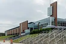 Since 1968 the school's hockey teams played at Frank Ritter Memorial Ice Arena on campus, but in 2010, the school launched the "Power Play" campaign, in which it hoped to raise 15 of the 30 million dollars it would cost to build a new arena.[6] On November 11, 2011 it was announced that B. Thomas Golisano and the Polisseni Foundation were donating 4.5 million to the new arena, which came to be named the Gene Polisseni Center.[7] The new 4,300 seat arena was completed in 2014 and the Men's and Women's teams moved into the new facility in September for the 2014–2015 season.