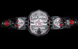 The title was officially announced in a press release on August 30, 2016, and marked the first new title created by ROH in six years, following the 2010 creation of the ROH World Television Championship.[1][6][7] ROH promoted the title as the first time in nearly 25 years that a major American promotion had had a six-man tag team title.[8] The championship belts were redesigned in January 2018.[9]