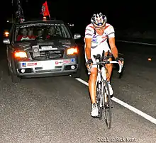 On June 16, 2010, participant Diego Ballesteros Cucurull of Spain was critically injured when he was struck by a car near Wichita, Kansas.[4] A little less than one month later, Ballesteros was home in Spain and undergoing rehabilitation. He is paralyzed from the waist down, but hopes to walk again one day.[5][6] A similar fate befell Canadian cyclist Wayne Phillips in 1985, when he was struck by a hit-and-run driver in New Mexico.[7]