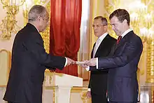 - Послы иностранных государств, вручившие верительные грамоты Президенту России (in Russian). Presidential Press and Information Office. 29 May 2009. Archived from the original on 10 September 2012. Retrieved 2009-06-12.