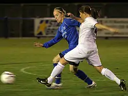 Stowell joined Bristol City Women aged 12 and played with her local club for seven years before moving to Southampton Saints. With Southampton, Stowell played in the 1999 FA Women's Cup final.[2] She was a full-time professional player with Fulham from 2000 until 2003.[3][4] Stowell later played for Bristol City Ladies again, Arsenal Ladies[5] and Leeds United Ladies.[6] Stowell joined Leicester City after a period of inactivity after childbirth and an ACL injury.[1] She captained Leicester to third place in the 2009–10 FA Women's Premier League Northern Division, then retired at the end of the season.[1]