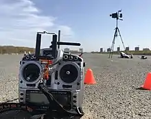 Video transmitters typically operate at a power level between 200 mW and 2500 mW. The most common frequencies used for video transmission are 900 MHz, 1.2 GHz, 2.4 GHz, and 5.8 GHz.[5] Specialized long-range UHF control systems operating at 433 MHz (for amateur radio licensees only) or 869 MHz[5] are commonly used to achieve greater control range, while the use of directional, high-gain antennas increases video range. Sophisticated setups are capable of achieving a range of 20–30 miles or more.[6] FPV aircraft are frequently used for aerial photography and videography, and many videos of FPV flights can be found on popular video sites such as YouTube and Vimeo.