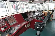 The vessel is the first Rainbow Warrior that is not converted from another vessel. Her hull was constructed in Poland and she was built in Germany, to provide state-of-the-art facilities for the group's use, including advanced telecommunication equipment, specialised scientific equipment and a helicopter landing pad.[6] The ship is also designed to be one of the "greenest" ships afloat, and to showcase this quality, it runs primarily using wind power, with a 55 m mast system which carries 1255 sq meters of sail and is backed up by a "state-of-the-art hybrid". On board the ship can store up to 59 cubic meters of greywater and blackwater, avoiding the need for disposal at sea. All materials, from the paintwork to the insulation, have been chosen with a view to sustainability, and each component has been supplied with transparent ethical sourcing.[2]