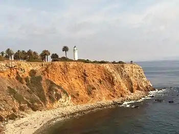The Point Vicente Lighthouse, built in 1926, is on the National Register of Historic Places. It is a lighthouse that is 67 feet (20 m) tall and stands on a cliff with a height of 130 feet (40 m).[26] It is between Point Loma Lighthouse to the south and Point Conception Lighthouse to the north. The lighthouse was added to the National Register of Historic Places in 1980.[26] The lighthouse is owned by the United States federal government and is managed by the United States Coast Guard.