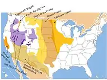 Steppe, in physical geography, refers to a biome region characterized by grassland plain without trees apart from those near rivers and lakes. The prairie (especially the shortgrass and mixed prairie) is an example of a steppe, though it is not usually called such. It may be semi-desert, or covered with grass or shrubs or both, depending on the season and latitude. The term is also used to denote the climate encountered in regions too dry to support a forest, but not dry enough to be a desert.