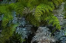 Because there are virtually no streams on the island, plants rely on rainfall for moisture. It has the largest forest of pohutukawa trees in the world,[3] as well as many northern rata trees. In total, more than 200 species of trees and flowers thrive on the island, including several species of orchid, as well as more than 40 types of fern.[6] The vegetation pattern was influenced by the more recent eruptions creating lava flow crevices where pohutukawa trees (Metrosideros ssp) grow.[19]