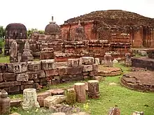 A large-scale excavation was conducted at the site by the ASI between 1958 and 1961, uncovering most of what is known today. The report of these excavations was published by the ASI (Mitra, 1981 and 1983). In this twenty year interval a thesis and article were published.[46] There was a further ASI campaign in 1997–2004, which concentrated on moving the temple which had been built over a stupa. The large amount of sculpture surviving has been analysed in a number of publications.[47]