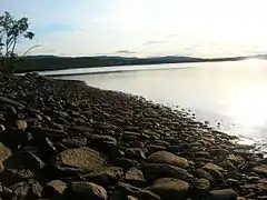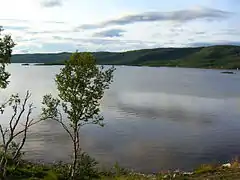 Raudvatnet (English: the red lake) is a lake in the municipality of Rana in Nordland county, Norway. The European route E12 highway passes along the northern and eastern shores of the lake between the town of Mo i Rana and the border with Sweden. A Red cross hut (Rauvasshytta) is located east of the lake Raudvatnet. Water flows into the lake Raudvatnet primarily from the nearby lake Tverrvatnet to the south. From Raudvatnet, the water flows into the river Tverråga, a tributary to the main river Ranelva.