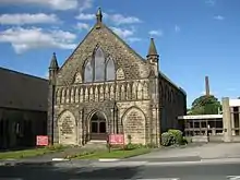 Further schools in the area include the Friends School at Low Green which operated from 1832 until 1921 and whose buildings now serve as a light industrial estate, The Rev. Anthony Ibbotson’s Seminary, run 1823-1858 by the local minister, the Baptist Ministerial Training College in a Victorian Gothic building on Woodlands Drive which opened in 1859 and closed in the 1970s, and Little London School in Micklefield Lane, built in 1846 in a vernacular Tudor style, which was also used by the Baptists as a Sunday School until their own was built in 1884 and also as a Mechanics Institute until a building in Leeds Road was acquired. From 1920 on it served as an infants school and closed in 1960. Being used for some years for storage purposes, it was converted into flats (1980). Littlemoor Primary School in quasi-ecclesiastical style with a bell turret opened in 1879 at the junction of Harrogate Road and Batter Lane. It closed in 2005 and is converted into housing.[12] Rawdon Littlemoor Primary School now uses a new building.