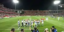 In February 2019, a Basque derby league fixture hosted by Real Sociedad against Athletic Bilbao, which would usually be held at the club's Zubieta training centre, was played at the Anoeta Stadium, attracting an attendance of 21,234 (the result was a 2–2 draw).[2] The following week, the same venue hosted a semi-final of the Copa de la Reina in which Real defeated Sevilla 3–1 in front of 18,731 fans to reach the final of the competition for the first time.[3] On 11 May 2019, the club achieved their first ever major trophy by beating Atlético Madrid 2–1 in the final of the Copa de la Reina, played in Granada.[4] The win granted entry to the newly-established Supercopa de España Femenina, but after overcoming Levante to reach its final, they suffered a humiliating 1–10 defeat to Barcelona.[5]