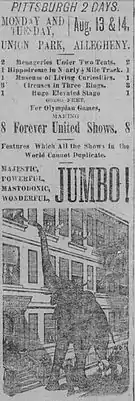 Beyond simply major sporting events, the park often also doubled as a venue for circuses, carnivals, various ethnic and holiday celebrations, and track meets. Prior to the evolution of the Exposition grounds for major gatherings, Union Park was a main local gathering place, sitting immediately next to the Pittsburgh, Fort Wayne and Chicago Railway, that could easily and closely accommodate large crowds for exhibitors. Popular national figures such as Adam Forepaugh and P. T. Barnum would often hold their shows here, spending often up to three days located at the park before moving off to other, more typical one night shows in smaller towns.
