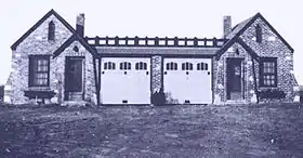 It was a shaky plan from the start, and things only went downhill from there. Red Crown manager Neal Houser was immediately suspicious when Blanche flounced into the office in tight, provocative jodhpurs riding breeches, a get-up unheard of in stodgy Platte City and one much discussed at the time and still remembered by eyewitnesses forty years later.[12] She booked both rooms out back for three guests, one night, then paid the $4 with a fistful of small change.[9] Houser watched out his rear window as the driver of the car carefully backed it—nose out, "gangster style"—into the left garage and closed up the doors.[13] A short time later, the young woman reappeared at the Tavern's restaurant and bought five chicken dinners and five beers for the party of three. She paid for them with more small change. Houser insisted on following Blanche back to the cabins to record the car's license plate number, but had to content himself with just peering into the garage for it when Clyde wouldn't let him into the cabin.[8] After he left, the five settled in for supper; since the two brothers were still not speaking to each other,[9] it was a silent, somber repast.