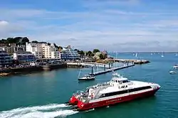 Red Funnel, formally The Southampton, Isle of Wight and South of England Royal Mail Steam Packet Company Limited,[3] is a ferry company that carries passengers, vehicles and freight on routes between the English mainland and the Isle of Wight. High-speed foot passenger catamarans, known as Red Jets, run between Southampton and Cowes, while vehicle ferries run between Southampton and East Cowes.