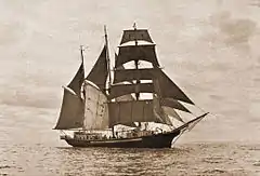 Until 1963, the ship sailed under Swedish colors and was called Regina, rigged as a three-masted topsail running foresail schooner. Following a severe fire in 1963, she was purchased by the Norwegian shipping magnates Siegfried and John Aage Wilson and converted to serve as the latter's private yacht. Rebuilt with a very tall three-masted barquentine rig for this purpose, the ship was renamed Regina Maris ("Queen of the Sea").[4] Between 1963 and 1984, she was used in many television and movie productions, conducted a global circuits, and underwent stints as a cruise ship, sail training facility, and marine mammal research vessel.