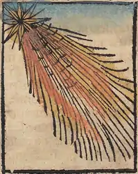 There is an image of him in Hartmann Schedel's 1493 Nuremberg Chronicle. He is holding an astrolabe.[lower-alpha 2] Yet, although there are thirteen illustrations of comets in the 'Chronicle (from 471 to 1472), they are stylized, rather than representing the actual objects.[lower-alpha 3]