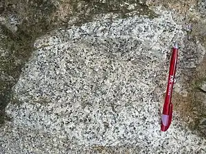 Regolith-hosted rare earth element deposits (also known as ion-adsorption deposits) are rare-earth element (REE) ores in decomposed rocks that are formed by intense weathering of REE-rich parental rocks (e.g. granite, tuff etc.) in subtropical areas.[2] In these areas, rocks are intensely broken and decomposed.[3] Then, REEs infiltrate downward with rain water and they are concentrated along a deeper weathered layer beneath the ground surface.[4]