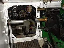 To reduce the height of the vehicle it has been made impossible for the crew members to retract their heads under the roof. To protect these vital parts two hemispherical armoured hoods (calottes) have been fitted. These have vision slits but to improve the field of vision the front section of these hoods can like a visor be pivoted backwards over the back section. As otherwise a bar between the roof and the glacis would have hindered entrance, the forward hinging glacis hatches have an extension forming the roof section that fits around the front part of the hood; if the hood is retracted and the hatch opened, a larger entry space is thus available. An interesting feature of the vehicle is the internal communication system used. When the hoods are closed, the two crewmen, separated by the engine between them, cannot directly communicate; neither internal nor external radio communications are possible, as there are simply no radio sets fitted. A system of white, blue, green and red lights, that can be made to shine continuously or flicker, is used by the commander to direct the driver when buttoned up, based on a predetermined signal code: