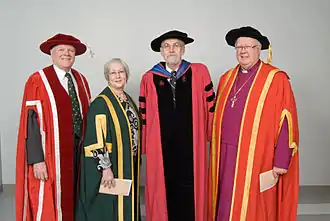 Honorary Membership is normally granted to members of the staff of Renison University College, the University of Waterloo, or the other Affiliated and Federated Institutions of Waterloo. The nominee must have made noteworthy contributions to Renison over an extended period of time during his or her employment at the College, the University of Waterloo, or the other university/colleges on campus.[10]