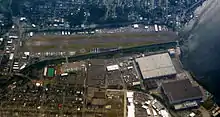 Renton Municipal Airport (IATA: RNT, ICAO: KRNT, FAA LID: RNT) is a public use airport located in Renton, a city in King County, Washington, United States.[1] The airport was renamed Clayton Scott Field in 2005 to celebrate the 100th birthday of Clayton Scott.[2] The airport's northern boundary is Lake Washington and the Will Rogers–Wiley Post Memorial Seaplane Base. Renton Airport has a floating dock and a launching ramp for conversion from wheeled landings to water takeoffs and landings.