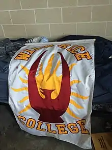 KTRU Rice Radio, the university's student-run radio station, and Rice Coffeehouse both began at Hanszen College.[34][35] Hanszen was the first residential college at Rice to use its own crest. Shortly after the founding of the residential college system, the students created the blue, black, and yellow crest that in time became the symbol of the college, setting a precedent for the other colleges.[36]