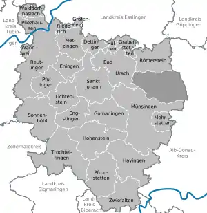 Reutlingen, nicknamed "The Gate to the Swabian Alb" (German: "Das Tor zur Schwäbischen Alb"), is a Landkreis (district) in the middle of Baden-Württemberg, Germany. The former free imperial city (until 1802) reached the limit of 100,000 residents in 1989. It is the ninth-largest city in Baden-Württemberg. Reutlingen district's neighboring districts are (from north clockwise) Esslingen, Göppingen, Alb-Donau, Ostalbkreis, Biberach, Sigmaringen, Zollernalbkreis and Tübingen