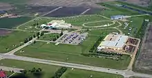 The museum is located on an 89 hectares (220 acres) property in Wetaskiwin, Alberta.[11] The property is adjacent to Wetaskiwin Regional Airport, and is situated near the eastern portion of Alberta Highway 13 before it branches north. Three major buildings are situated on the property; the main museum building, the aviation display hanger, and the collections storage facility.[11] RPK Architects served as the architect for the museum buildings.[12]