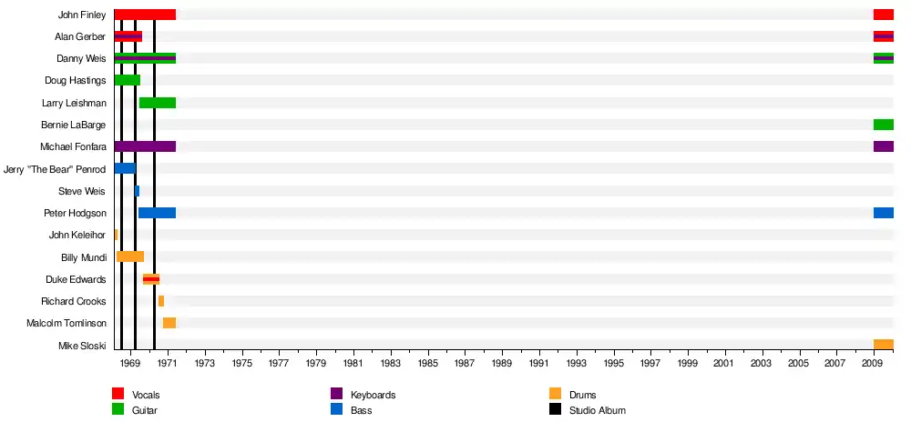 | Past members | John Finley Michael Fonfara Danny Weis Doug Hastings Alan Gerber Jerry "The Bear" Penrod John Keleihor Billy Mundi Peter Hodgson Duke Edwards Larry Leishman Bernie LaBarge Mike Sloski |